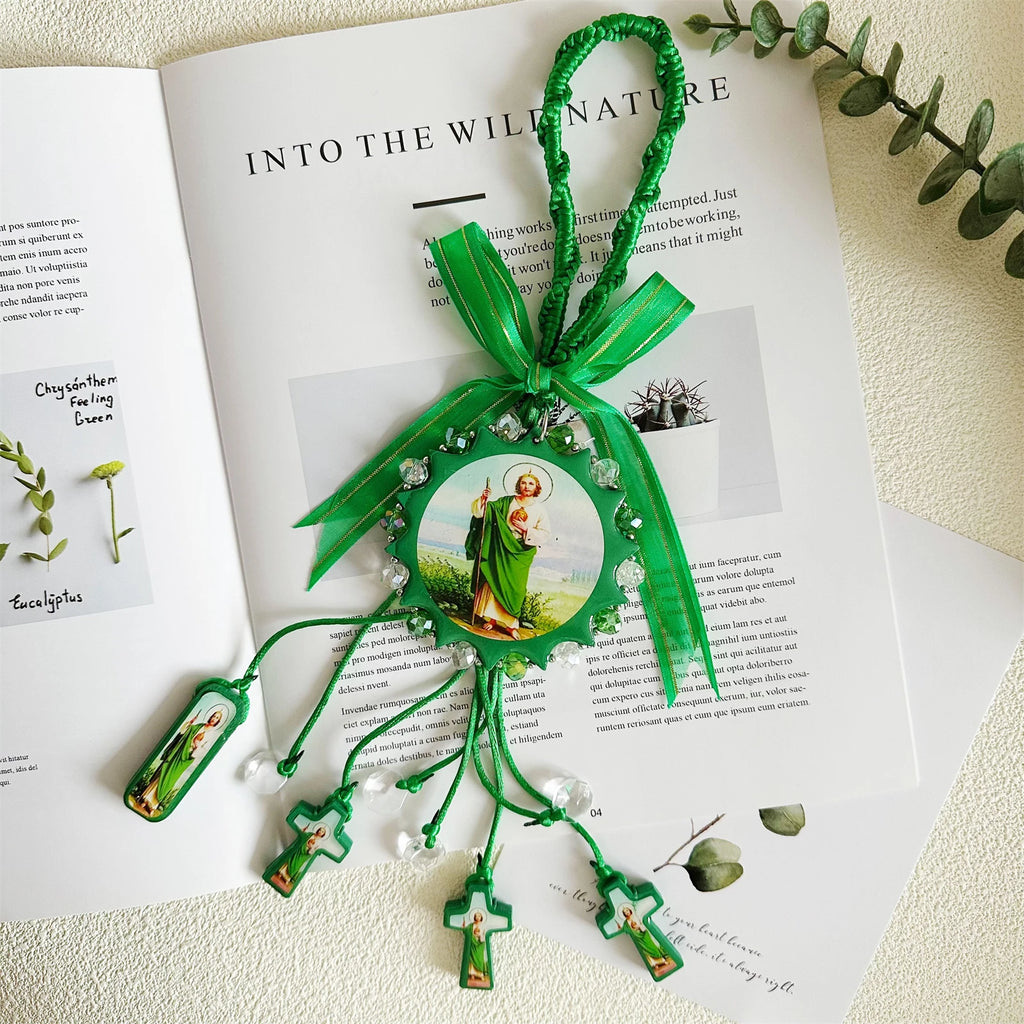 1Pc Wooden Cross Pendant Easter Gift Catholic Wooden Virgin Mary / Saint Jude Protection Blessing Charm Car Hanging Charm for Me
