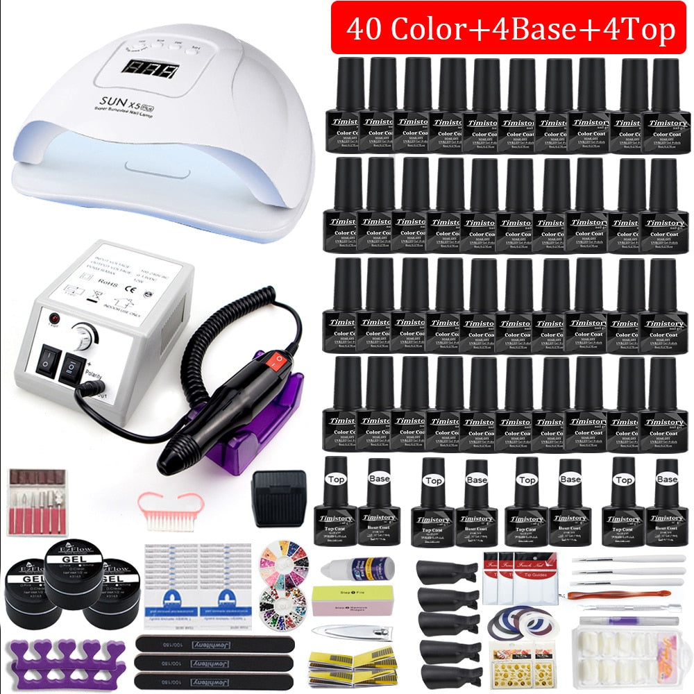 40 Farben Nagellack Super Maniküre Set 120/80/54W LED Nagellampe Nagelset mit allen Werkzeugen für die Maniküre elektrische Nagelfeile