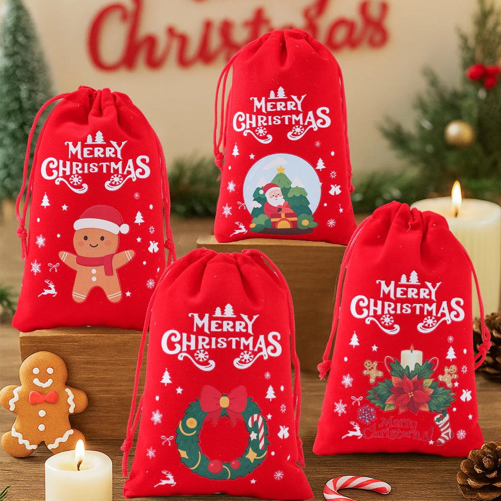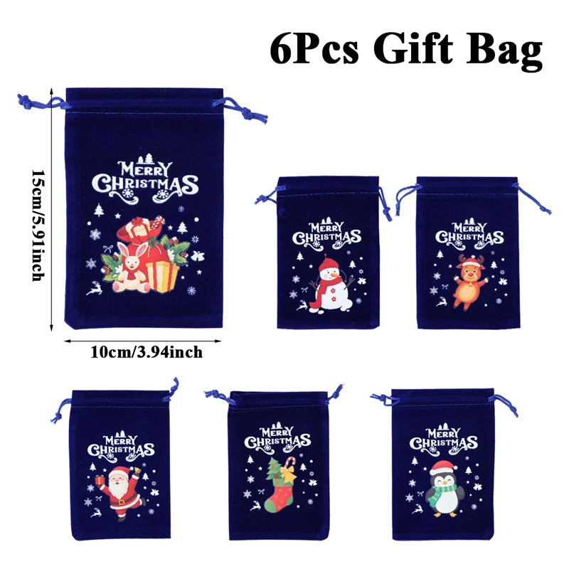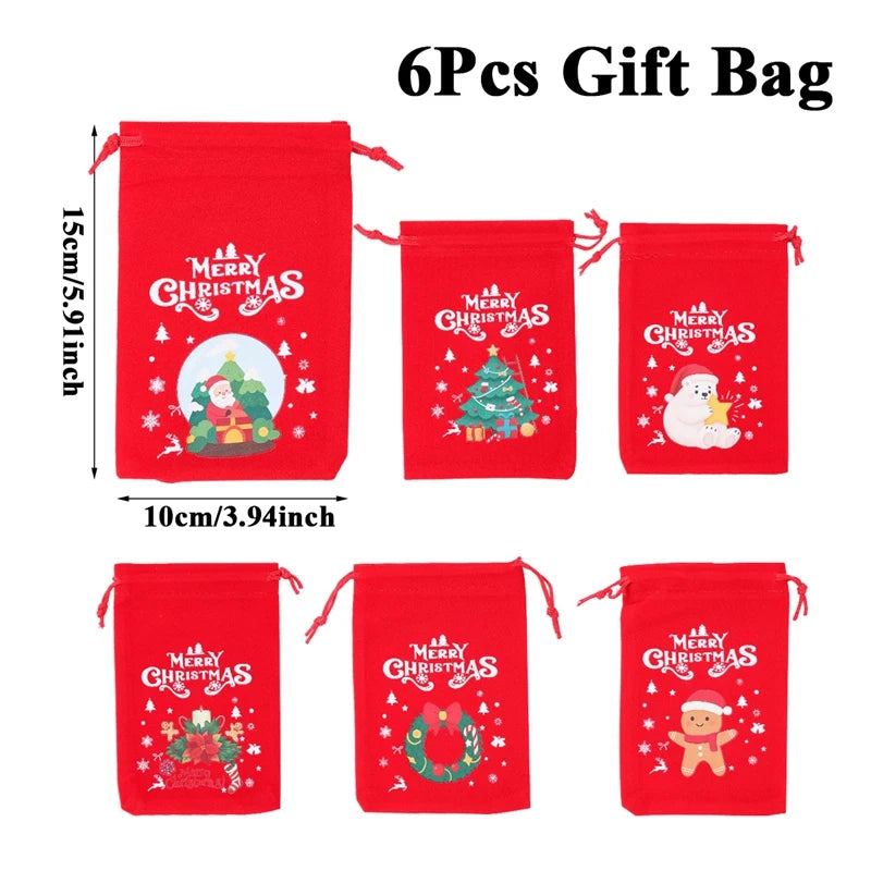 6pcs Christmas Linen Drawstring Bags Burlap Gift Bags Candy Biscuits Pouchs for Home Decor 2025 Navidad Natal New Year Gift 2026