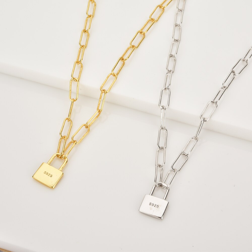 ANDYWEN 925 Sterling Silver Lock Pendant Long Chain Horoscope Chain 45cm Long Chains Rock Punk Fashion Fine Jewelry For Women