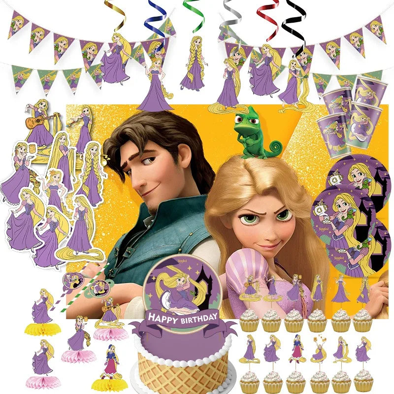 Anime Tangled Rapunzel Theme Party Supplies Tableware Paper Cup Plate Napkin Flag Baby Shower Balloons Birthday Party Decoration