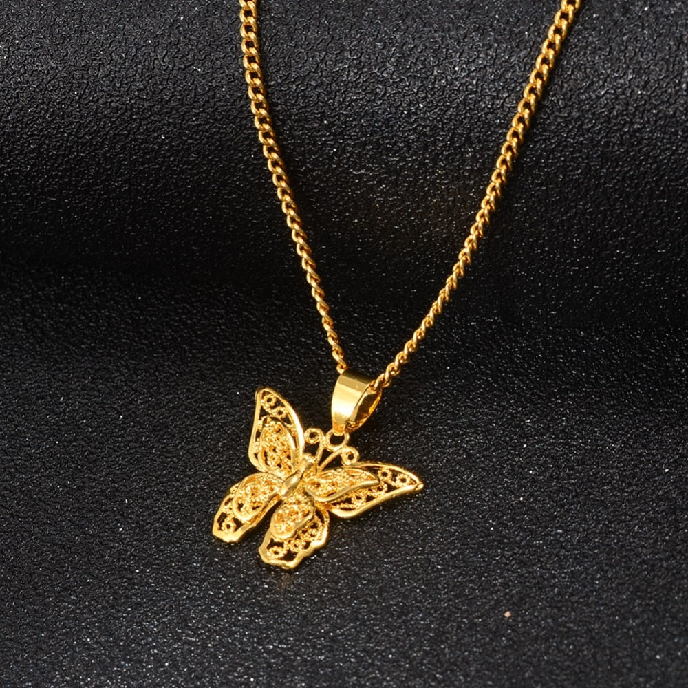Anniyo Schmetterling Charms Anhänger Kette Halsketten für Frauen Mädchen Gold Farbe Schmuck PNG Geschenke #006209