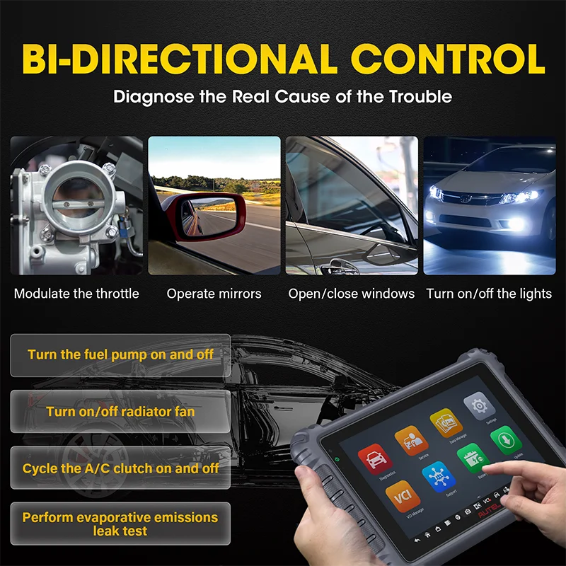 By passing the electronic control module and communicating directly with the control unit is an efficient diagnosis method. The MK906BT car scanner can perform active tests to check the vehicle’s running states by receiving information from ECUs or by monitoring actuators (e.g., switching solenoids, relays, or on-off between two operations) to control the system or parts (e.g., ABS, windows, doors, roof).