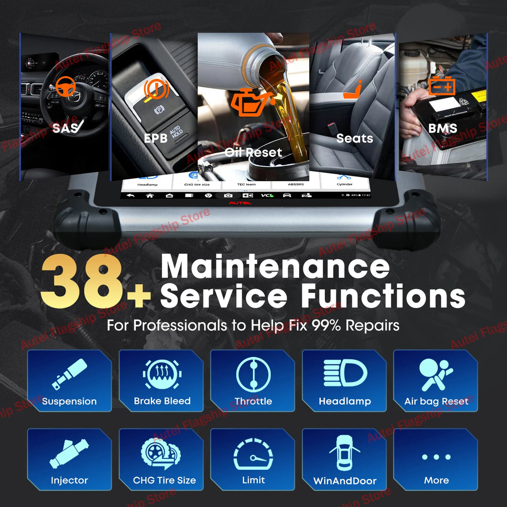 Same as MS919/ MS909, Autel scan tool MaxiSys Elite II Pro has 38+ maintenance for 10,000+ vehicle, such as Oil Reset, EPB, SAS, A/F Setting, Throttle, Suspension, Headlamp, IMMO Keys, Injector Coding, Power Balance, BMS Reset and so on. Bi-directional Control Autel Elite II Pro can transmit command to ECUs and perform active tests like Cooling Fan, A/C Clutch On/Off, Compression Test, ABS Motor Pump, Windows/Wipers/ Sunroof/ Doors Test, Personalized etc. Wide compatibility rates, same as MS909/MS919/Ultra. Covering 80+ car brands, 150+ makes, 10000+ models, with simple internet-ready updates accessible to you via WiFi.
