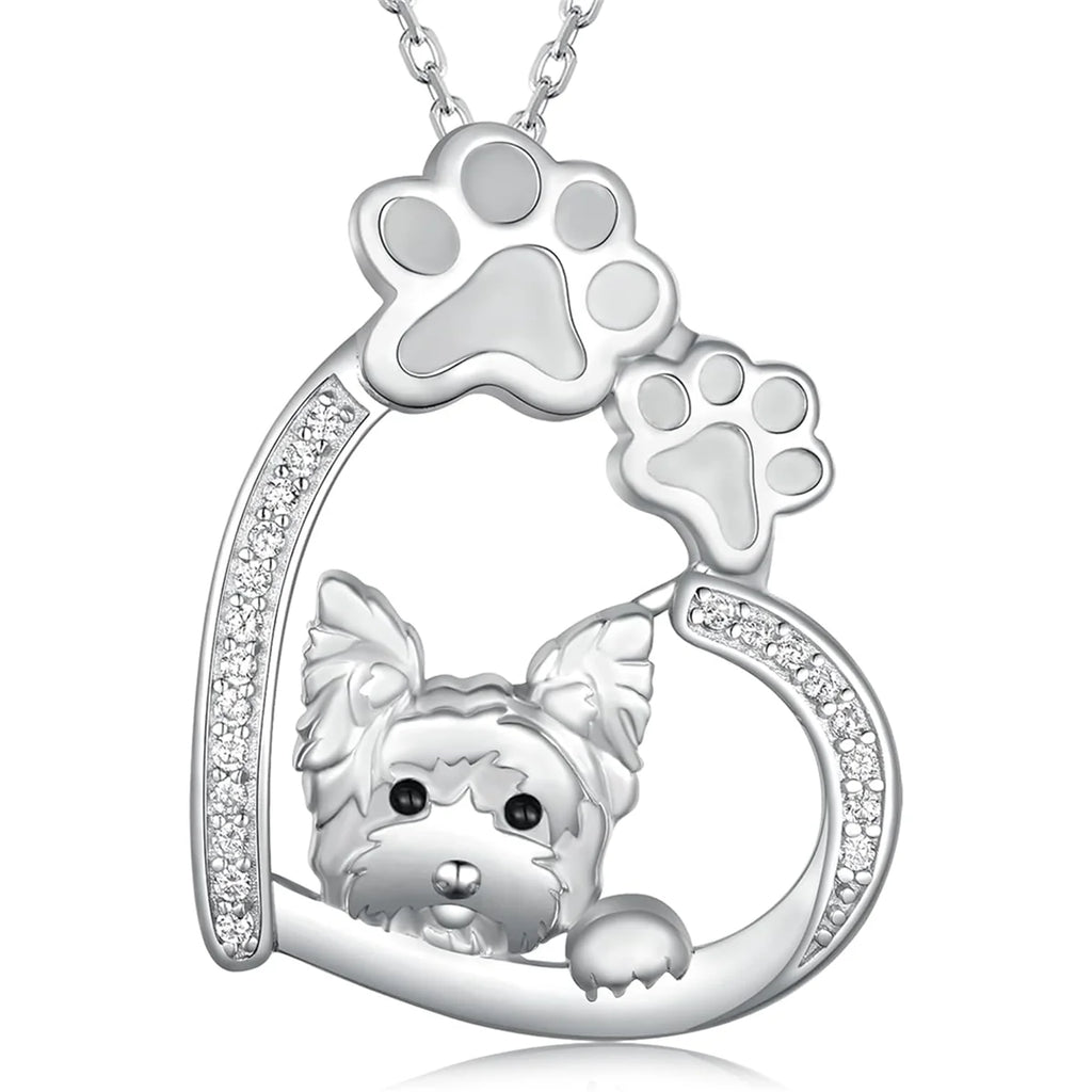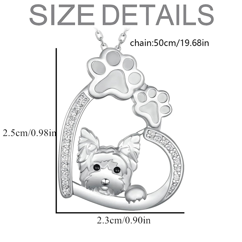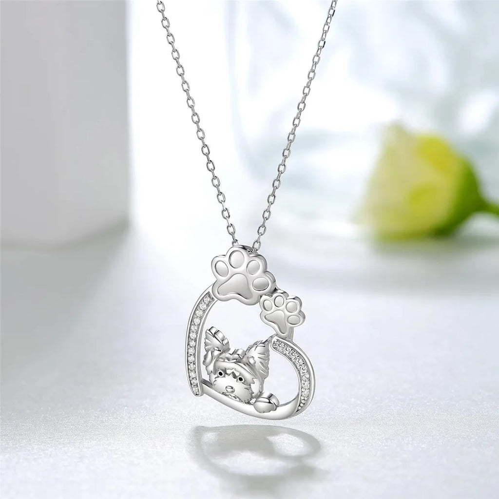 Creative Cute Dog Paw Heart Shaped Yorkshire Pendant Necklace for Women Fashion Animal Pet Jewelry Accessories Dog Lovers Gift