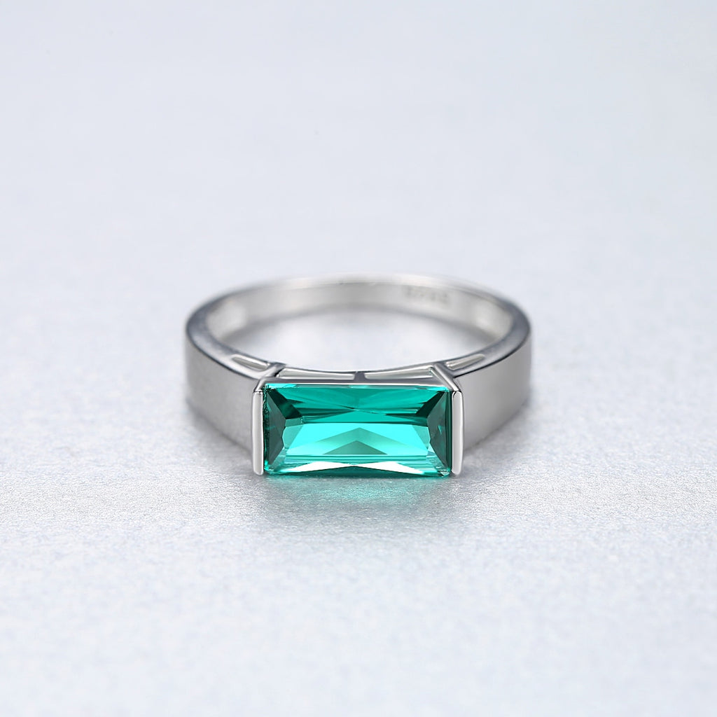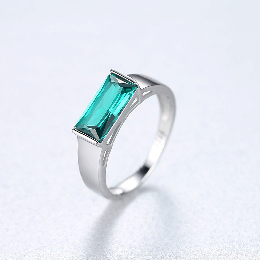 CZCITY Fine Rings for Women 925 Sterling Silver Luxury Green Geometric Topaz Rings Trendy Party Wedding Bands Vintage Jewelry