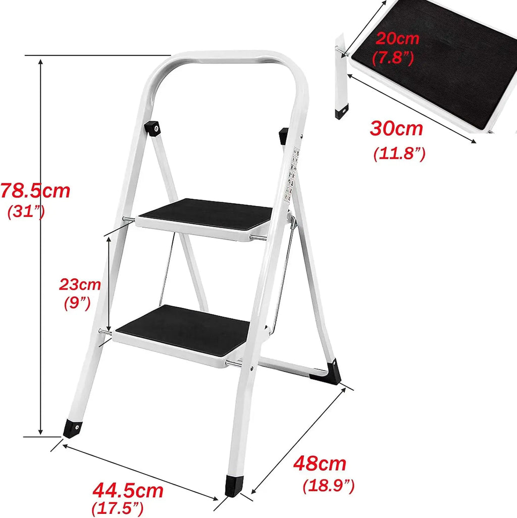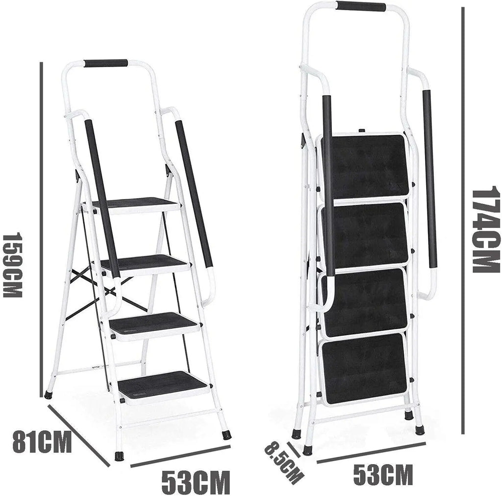 【Heavy Duty Stepladder】: The heavy duty stepladder is made of sturdy steel that supports up to 330 pounds, and finished with a layer of weather-resistant, white powder coating. It is modern and simple, suitable for most scenes.