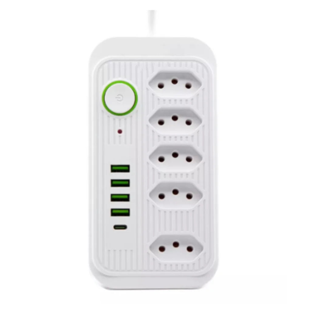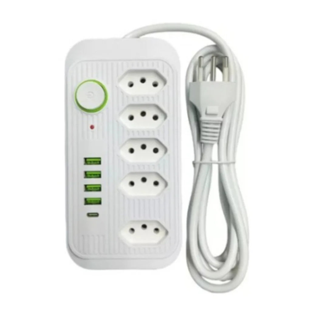 REGUA EXTENSÃO DE 5 TOMADAS 4 USB + USB TIPO-C 2 METROS