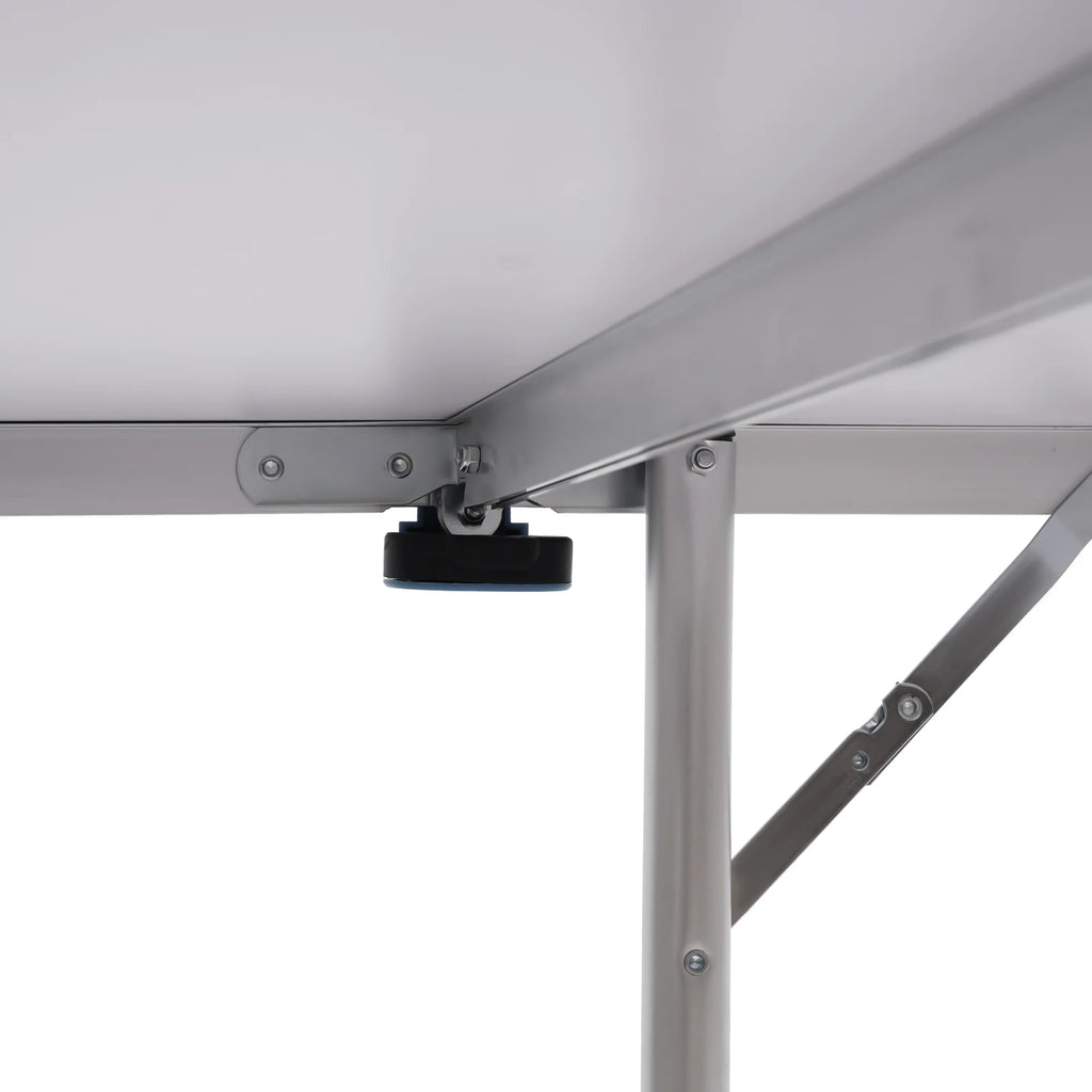 Whether you want to have fun, improve your game or train with high-quality equipment,our table tennis table will suit you. It is made of high-quality MDF and aluminum alloy which is durable and has a long service life. Thanks to the folding design with a handle, it can be easily stowed away and taken anywhere which is very convenient. Look forward to entertaining hours with your family, friends, and acquaintances. You deserve it!