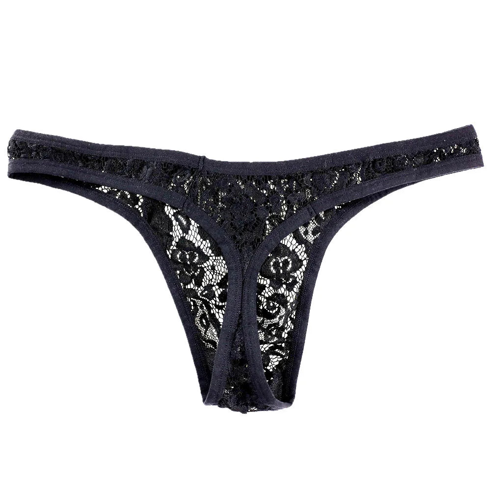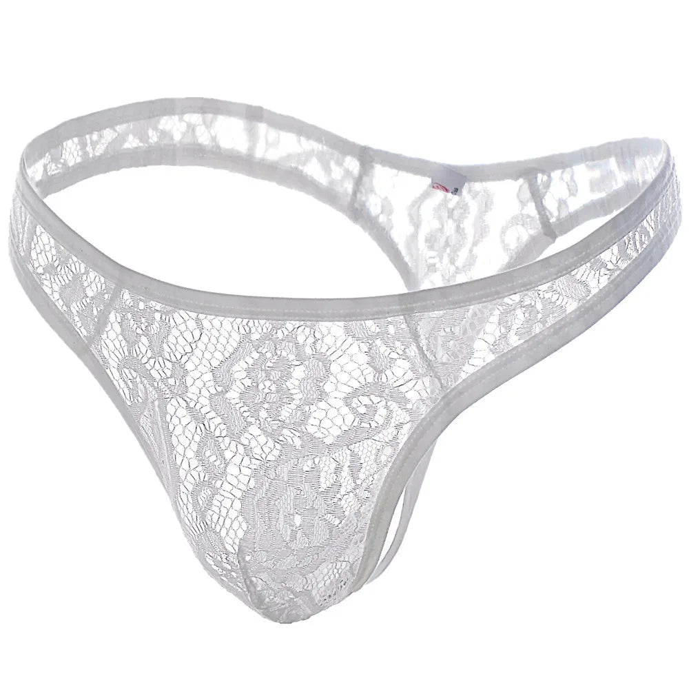 Hollow Out Lace Men Sexy Transparent Thong Underwear See Through Thong Sissy Personalized Jockstrap Men Underwear Erotic Pouch