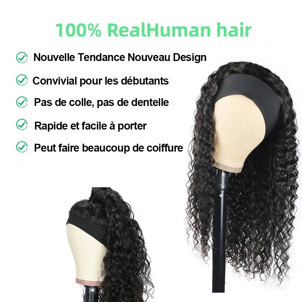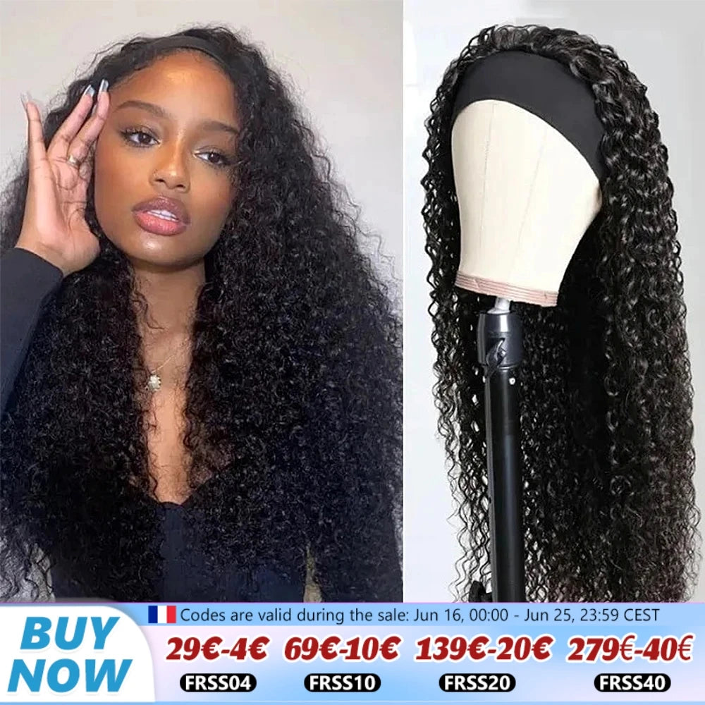 water wave headband wig180% densité kinky bouclé cheveux humains perruque pour