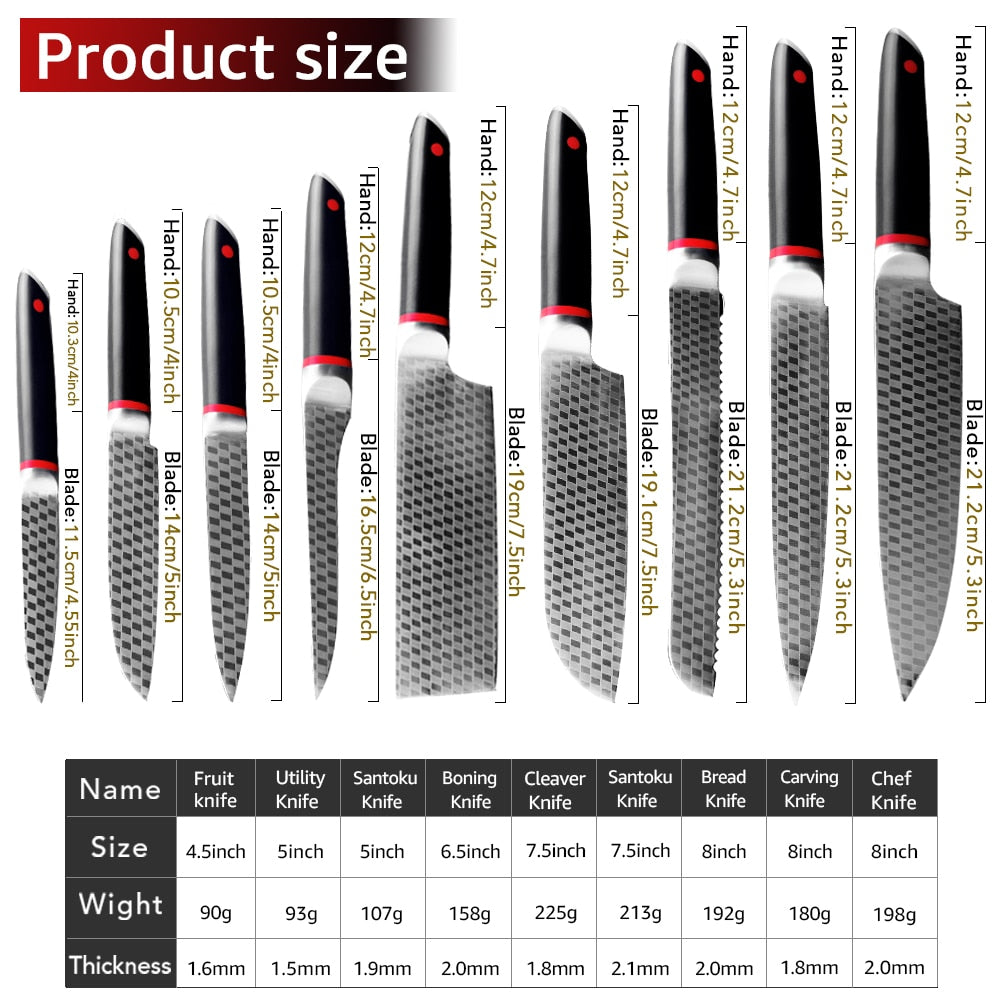 knife type: chef knife, santoku knife, bread, boning, utility , paring knife