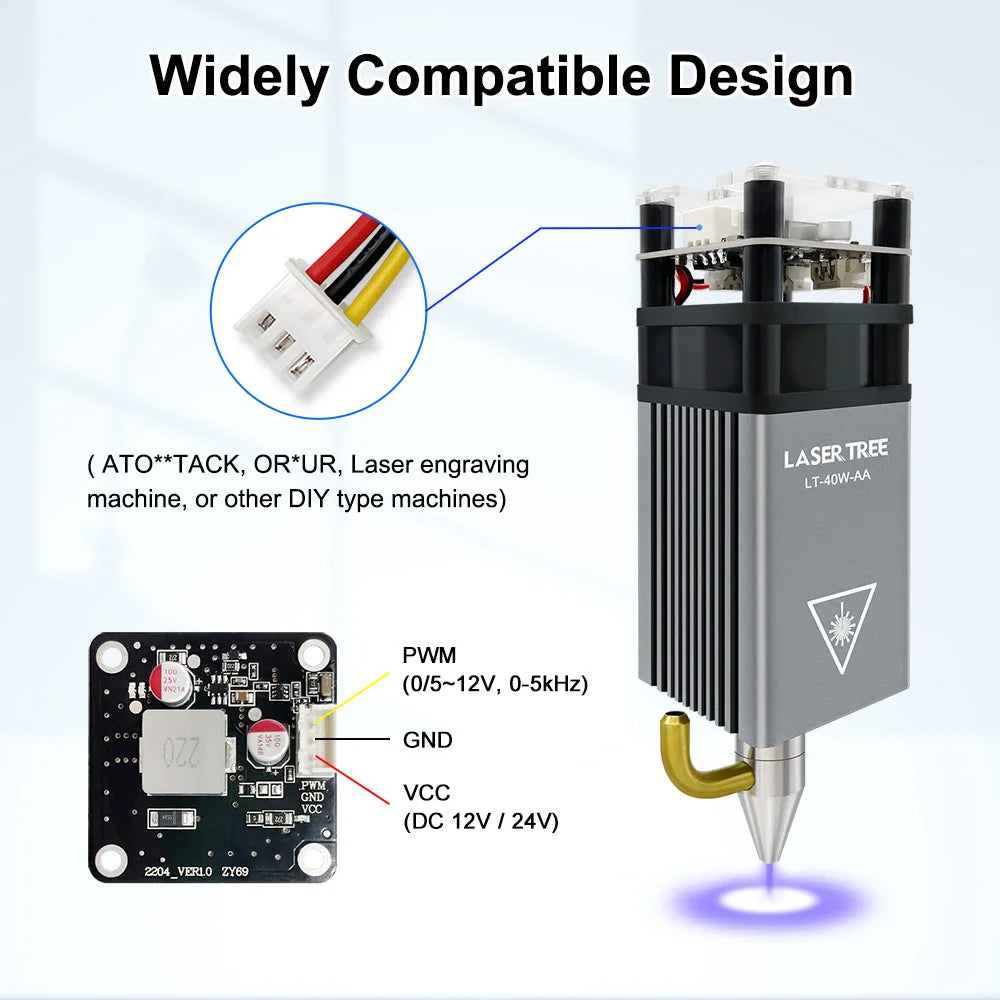 LT-40W-AA: 5W Fixed Focus 45mm Laser Module with Air Assist
