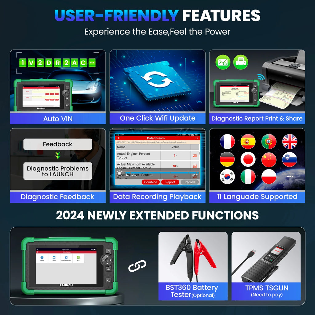 AUNCH CRP919 EV automotive scanner enables to run an all-system diagnostics and goes offering a complete scanning of engine, AT, ABS, TPMS, Fuel, BCM diagnostic data, so that you can quickly catch all the fault codes and repair them to optimized performance. And the Auto VIN could automatically identify vehicle information for some models and enhance diagnostic correctness and efficiency.