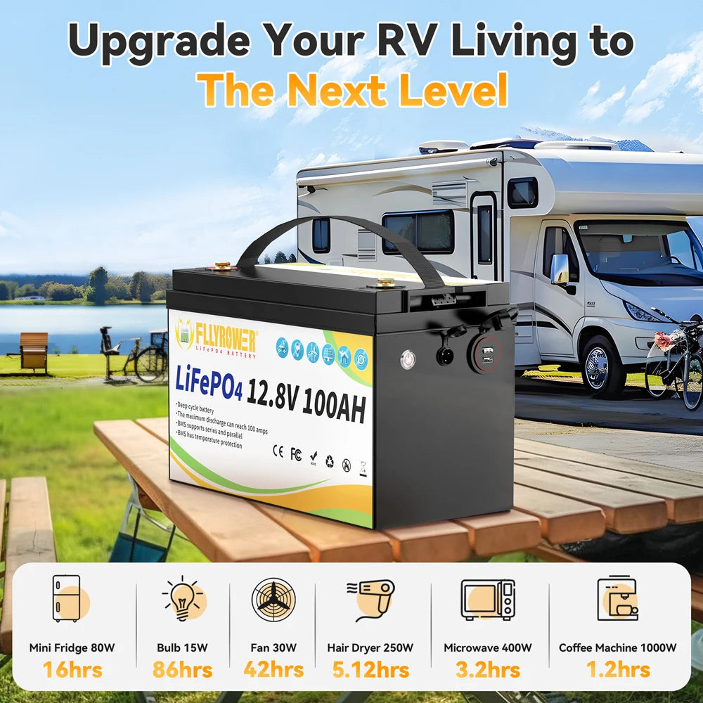 LiFePO4 Battery 12V 100Ah BMS100A Rechargeable Lithium Battery Pack For Inverter Solar Off-Road Off-grid Solar Energy Deep Cycle