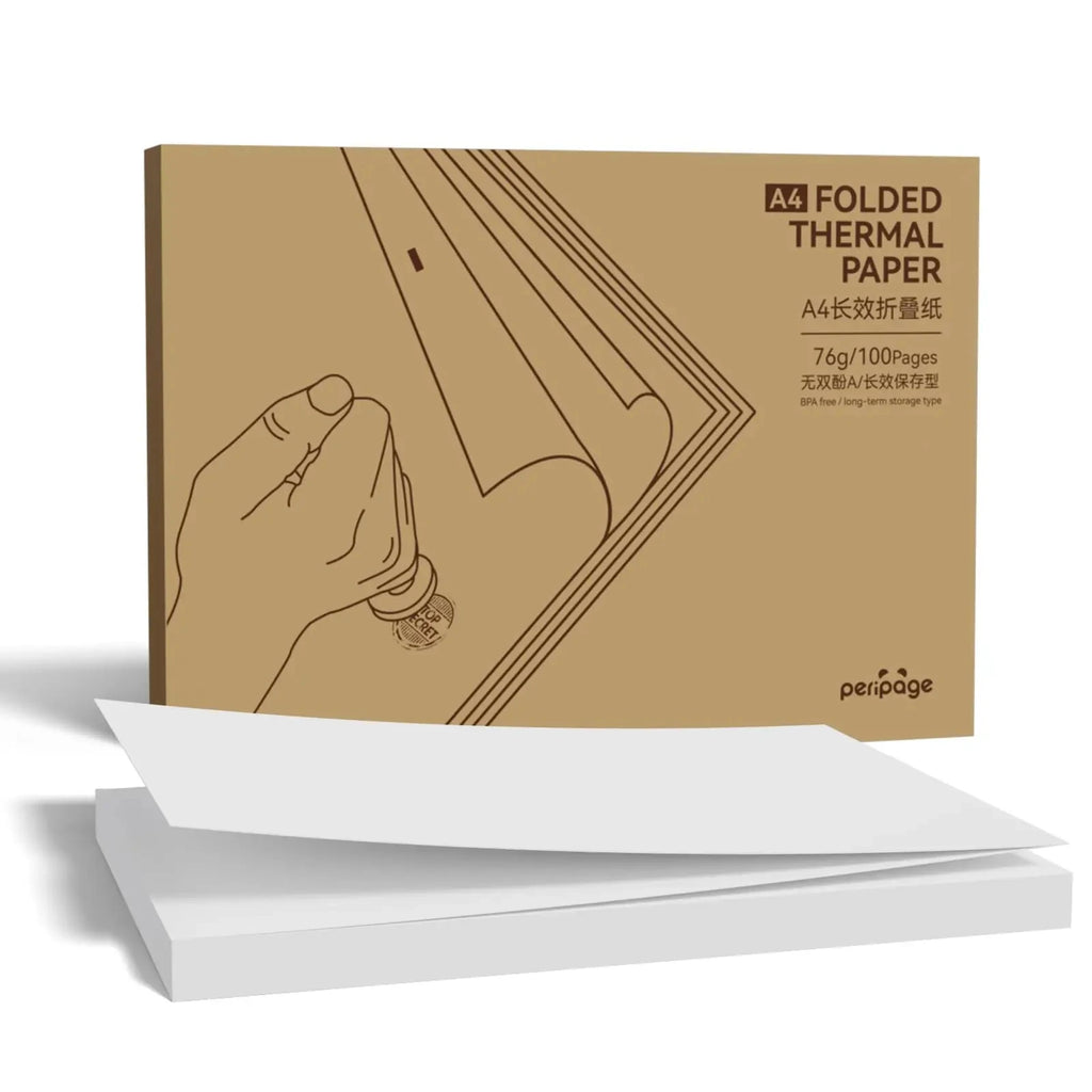 PeriPage Mini A4 Printers Quick Dry and Long Time Storage Continuous Thermal Paper 100 Sheets Folded Thermal Paper Papel