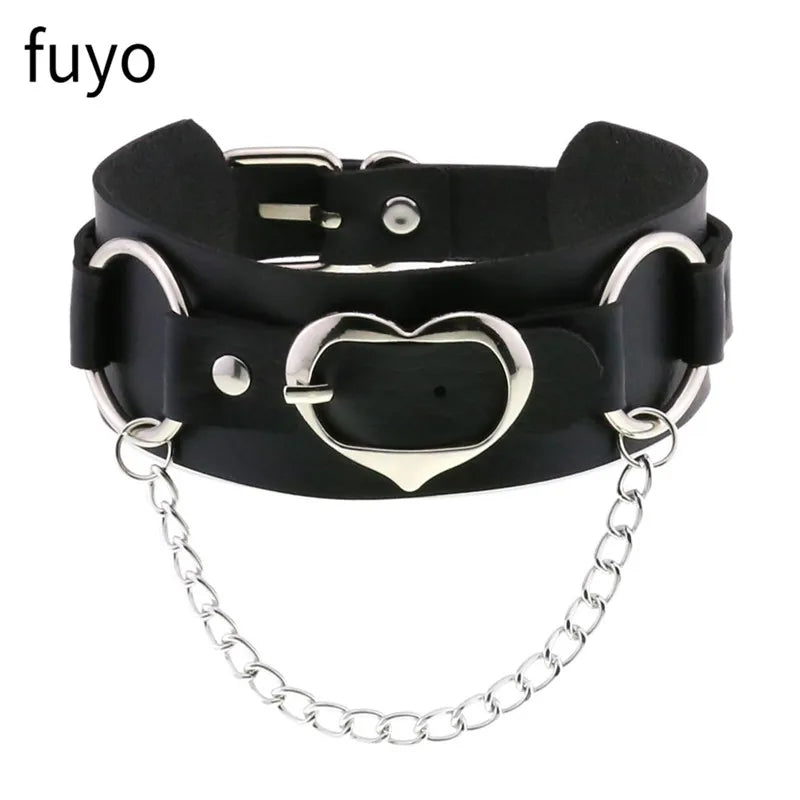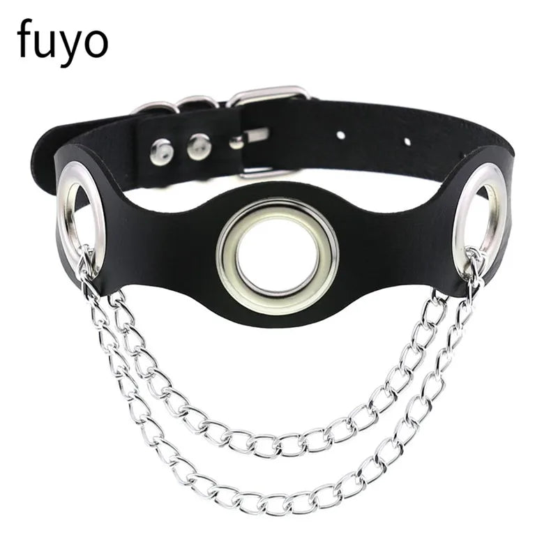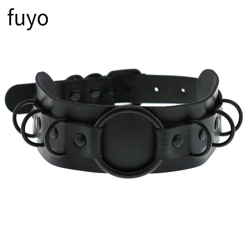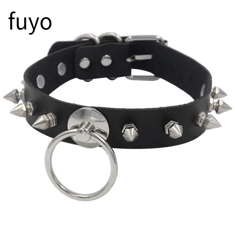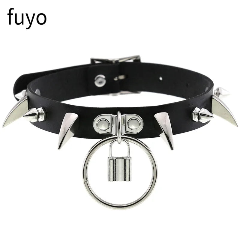 Punk Black Bell Lock PU Leather Necklaces for Women Cosplay Rock Geometry Rivet Collar Choker Necklaces Festival Jewelry
