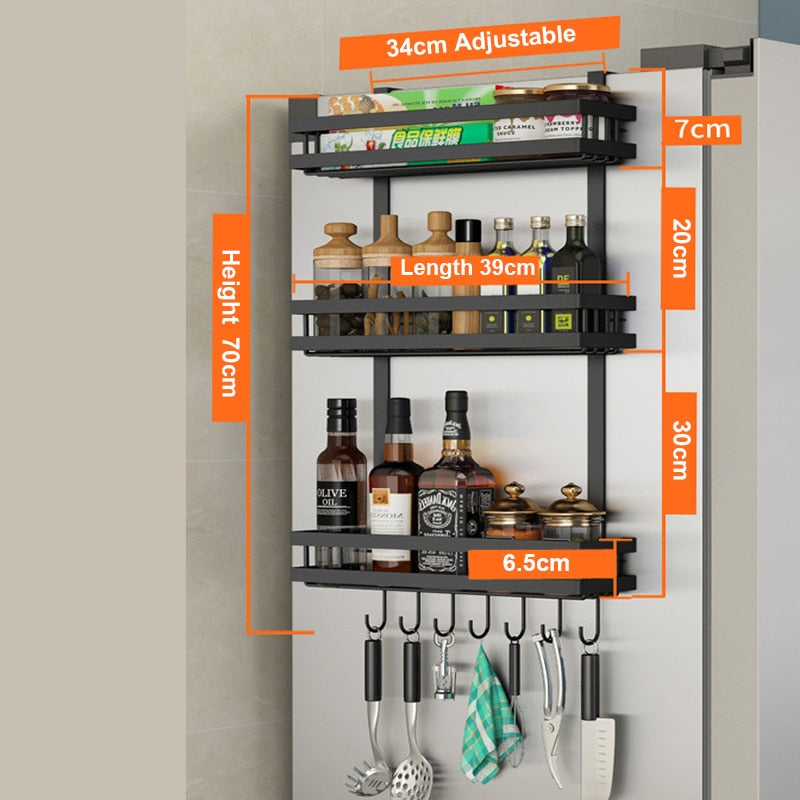 Refrigerator Side Storage Rack Fridge Shelf Cupboard Organizer Kitchen Cabinet Space Saving Refrigerator Hanging Storage Rack