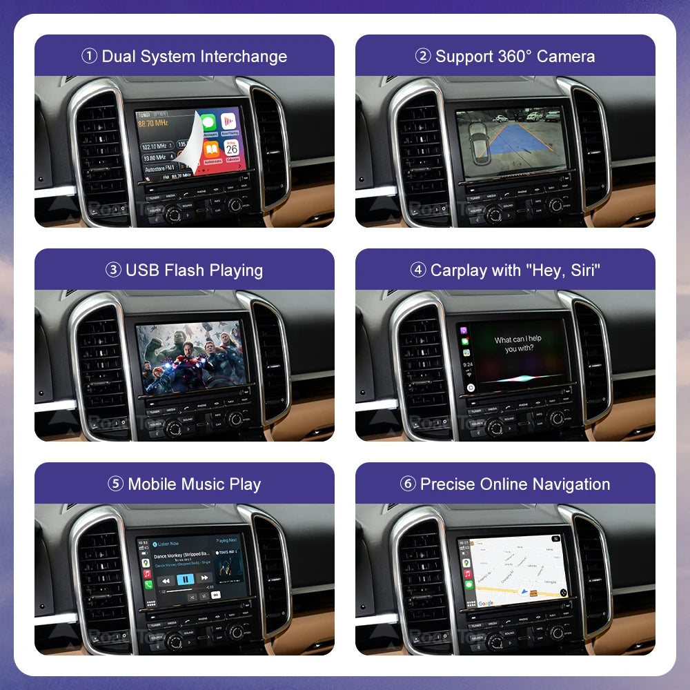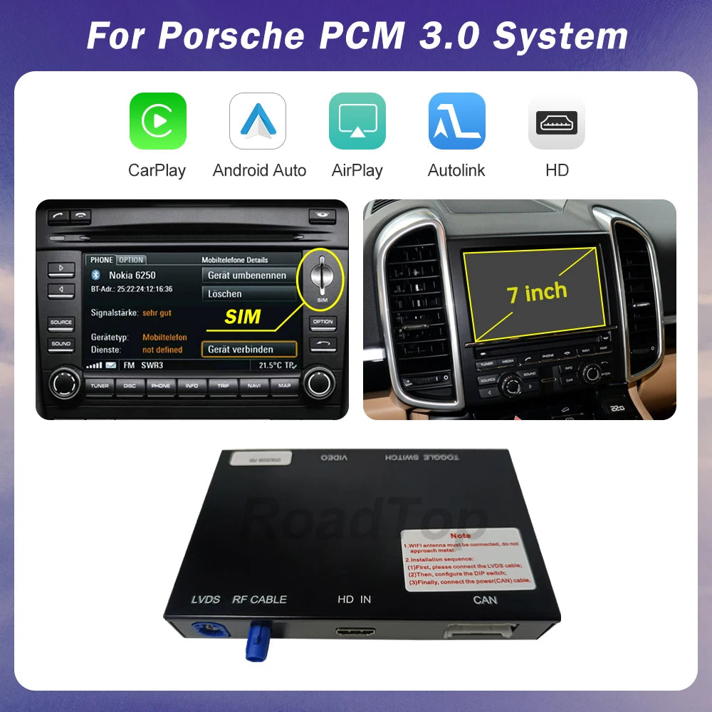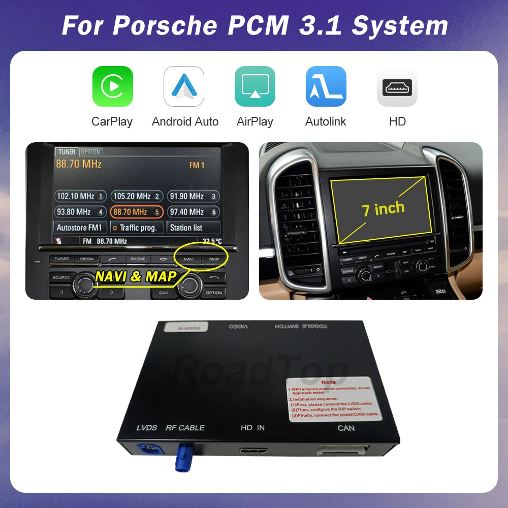 Road Top Wireless Carpaly for Porsche Macan Cayman Cayenne Panamera PCM 3.1 /PCM 3.0 System Support Android Auto Rear Camera