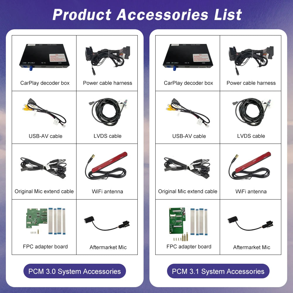 This amazing kit adds full CarPlay functionality to your existing PCM 3.1 system while retaining all the original PCM 3.1 system features.The CarPlay system supports button and steering wheel control and is integrated with the console or glove box USB.