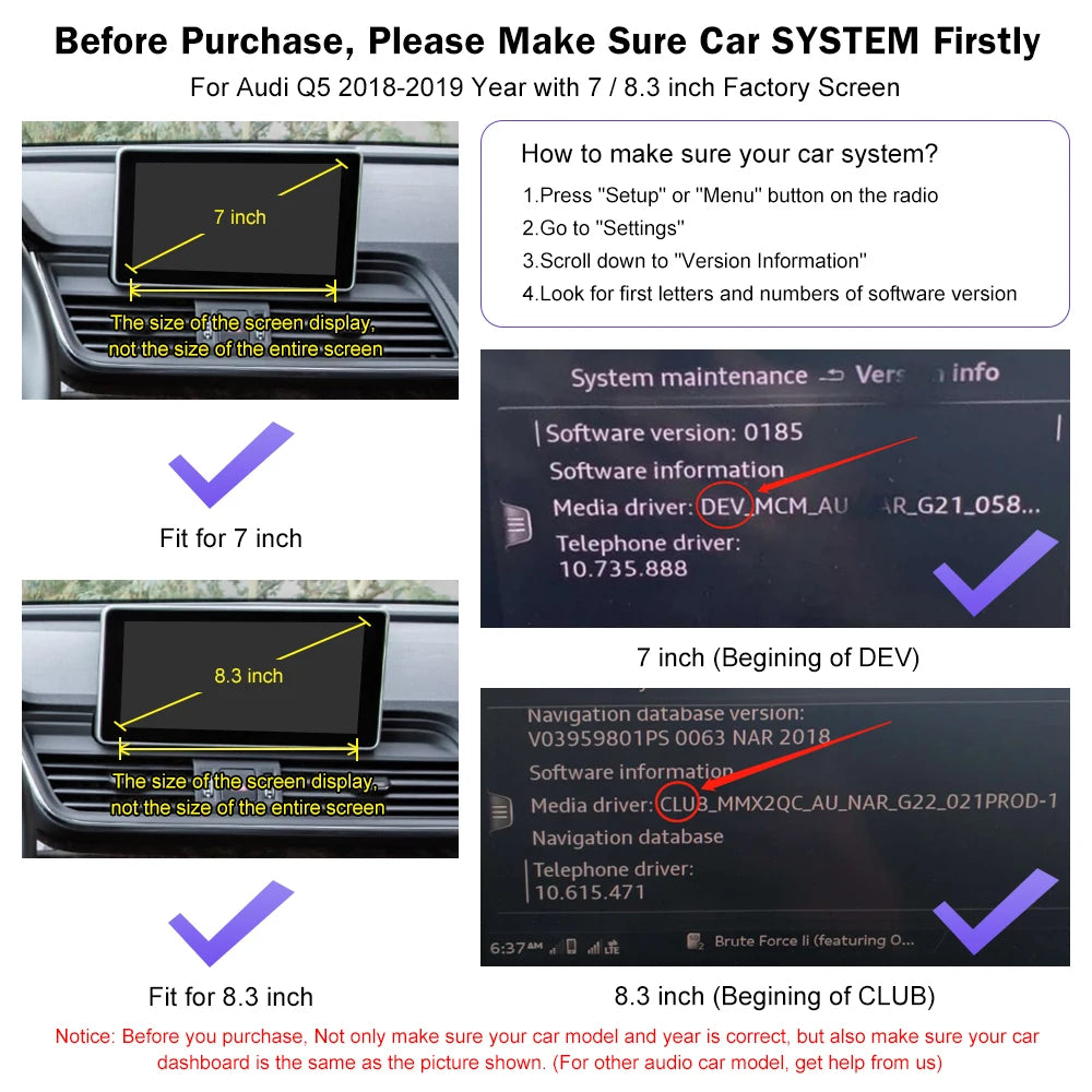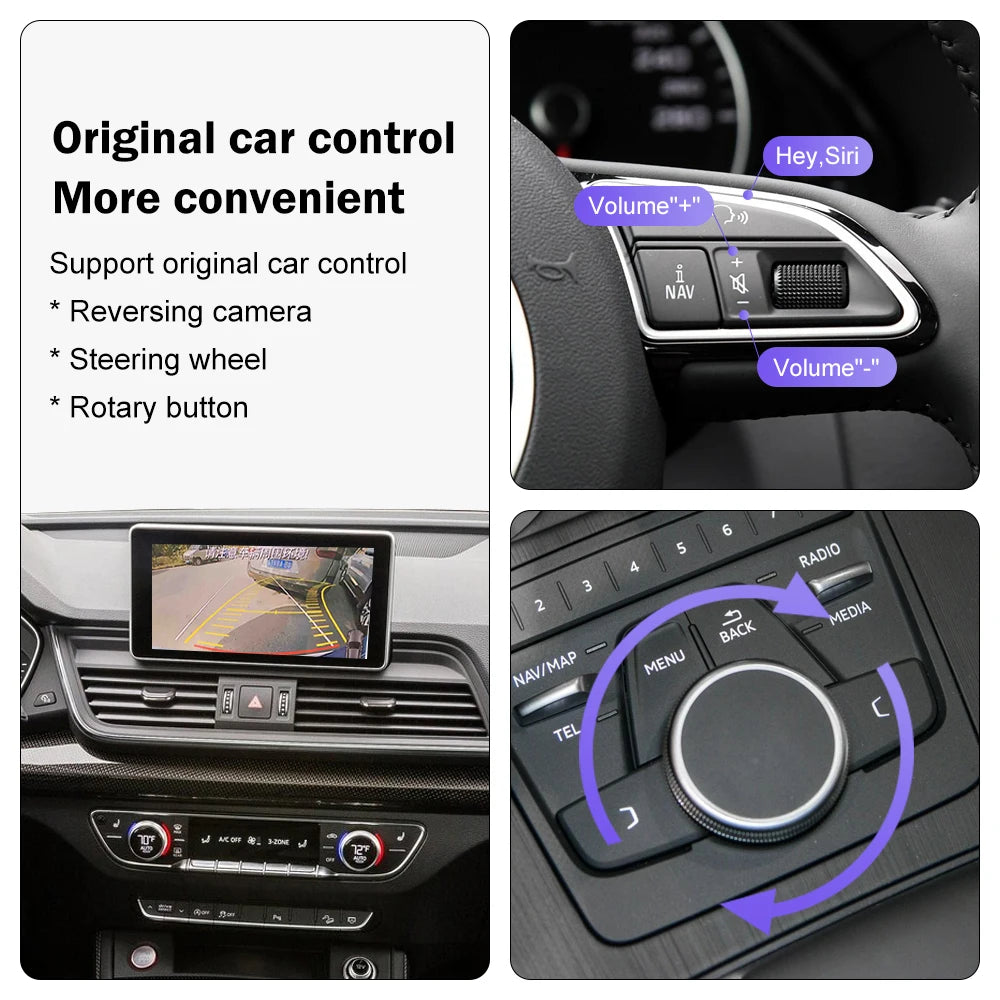 Wireless CarPlay Android Auto Interface for Audi Q5 2018-2019, with Mirror Link AirPlay Android Auto Rear View, USB Drive, Original Control