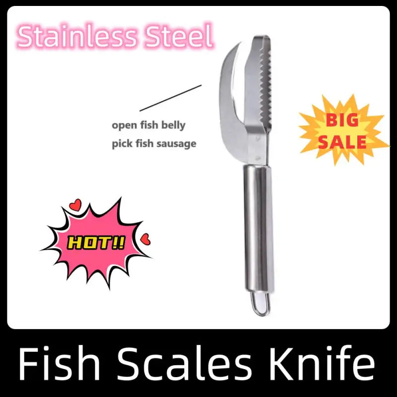 Stainless Steel 3 In 1 Fish Scale Knife Cut/Scrape/Dig Maw Knife Scale Scraper Sawtooth Peelers Scraping Boning Filleting