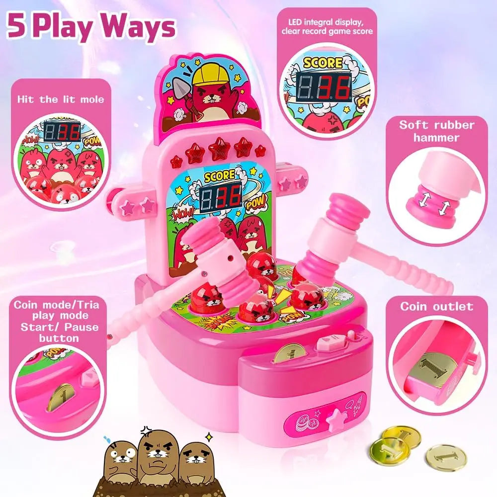 • 【NO SCREEN TIME & FAMILY GAME】Ditch the TV, cellphone, computer, both parents and kids, begin a whack a mole family game to increase the parent-child interactive, reignite family night. Now Don't blink, hold your hammer, focus on the Mini Electronic Arcade Game, hit the moles which are lit up to add the score. The more this is done the higher the final score will be.