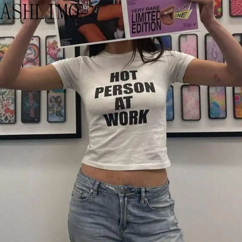 Women Clothing Aesthetics Y2K Tops High Street Harajuku Retro Fashion Casual Print O Neck Short Sleeve Top Short Navel Sexy